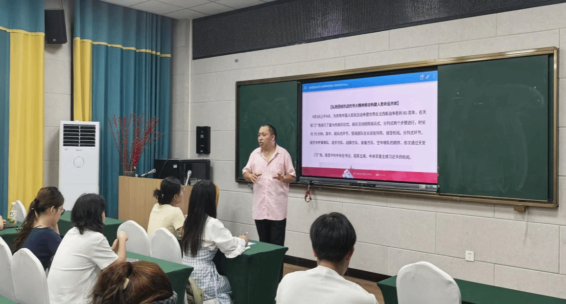 李顺前老师结合阅兵式阐述了“9·3”这一日子的重大历史背景和思政知识,指出阅兵仪式不只是新时代中国军队的展示,更是民族情感的集体表达;不仅凝聚了国家认同感,增强了国家统一的信心,更体现了中国推动构建人类命运共同体的理念,以及中国作为负责任大国的担当。