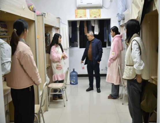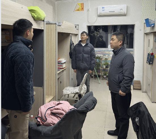 走访过程中,院领导与辅导员分别深入到每一间学生宿舍与同学们亲切交流,让大家在寒冬中感受到学院的温情与关爱。“暖冬行动”小组成员与同学们面对面交流,重点关照困难学生过冬需求,全覆盖开展冬季公寓安全与防诈骗宣传,同时推进期末诚信考试教育宣传与学生寒假留校情况摸排。老师们还询问同学们的御寒保暖物品以及室内热水温度等情况;向同学们讲解冬季用电安全知识,强调严禁使用违规电器,提醒大家离开宿舍时务必关闭电源,同时就防电信网络诈骗、消防安全、交通安全、冬季传染病预防等内容进行细致叮嘱,引导同学们提高安全防范意识。