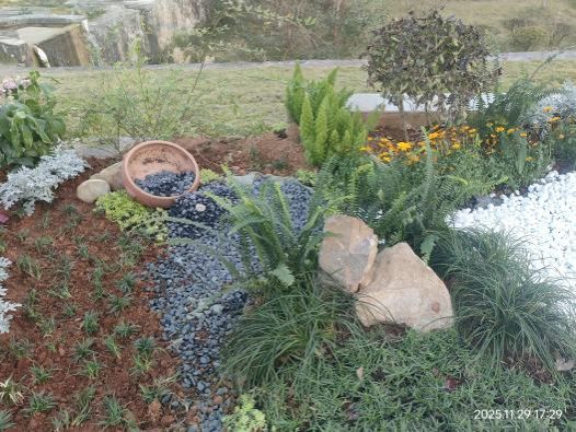 课程感悟:植物景观设计绝非图纸上的静态搭配,而是与场地、自然对话的动态过程。起初执着于方案的完美呈现,面对现场土壤条件、光照差异导致的植物适配问题时倍感焦虑。但团队协作调整中,我们逐渐明白“因地制宜”的深意——根据现场实际优化植物配置、调整种植密度与层次,并非妥协,而是让植物真正扎根场地、自然生长。这一过程让我们深知,植物景观的生命力在于尊重场地与植物习性,未来设计中,我们将更注重理论与实践结合,让植物景观兼具美感与生态适应性。