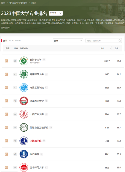 6月15日,高等教育专业评价机构—上海软科教育信息咨询有限公司发布2023年中国大学专业排名,伟德官网园林专业在上榜的80所院校中排名46,得分23.3分,与广西大学、沈阳农业大学、中国农业大学等均属B+层次。此次排名是按照学校条件、学科支撑、专业生源、专业就业、专业条件5个指标类别,共25项测量指标来检验专业的办学水平。