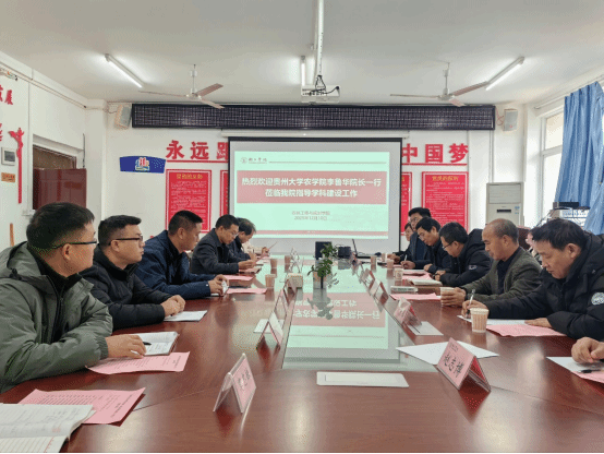 2025年12月10日下午,贵州大学农学院副院长李鲁华教授、国家小麦改良中心贵州分中心主任任明见教授、贵州大学农学院研究生党支部书记方晨教授、贵州大学农学院植物保护系副主任李荣玉教授等一行14人受邀莅临我院交流学科建设工作,我院党委书记李建新教授、副院长张俊波教授、党委副书记蒋旭军、副院长赵成刚教授、园林专业负责人高宇琼教授、林学专业负责人朱周俊博士等参会,会议由张俊波主持。双方围绕学科发展、人才培养、科研合作等核心议题深入研讨。