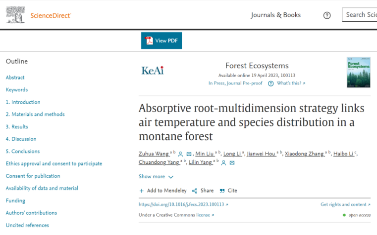 我院王祖华博士长期从事林学的研究,近日,在林学领域取得了重要研究进展,相关成果“Absorptive root-multidimension strategy links air temperature and species distribution in a montane forest”为题发表在中国科学院1区期刊Forest Ecosystems(IF=4.274,)上。