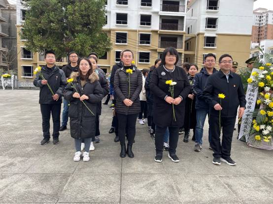 李建新书记(右一)带领全体党员师生前往文笔峰烈士陵园