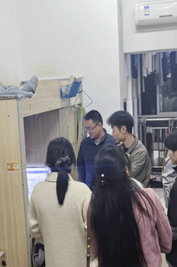 为深入了解学生冬季过冬情况,11月27日晚上21:00,我院党委书记李建新、院长米小其、党委副书记蒋旭军、副院长赵成刚、副院长张俊波分别带领全体辅导员(班主任)一行深入学生寝室开展“情谊暖寒冬,冬季送温暖”走访慰问活动。在走访慰问中,主要详细了解学生学习、生活、寒假返乡等情况,对学生存在困难及时给予关心和解决,嘱咐大家要提升安全意识,重视个人防护,加强体育锻炼,保持良好的生活习惯,以饱满的热情迎接期末考试,表达了学院全体教师对学生的亲切关怀。