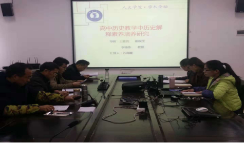 11月20日上午10点,bv伟德国际1946人文学院2018年度联合培养硕士研究生第五次学术论坛在人文学院会议室召开。2017级学科联合培养硕士研究生、导师、历史教研室教师代表杨春君老师,参加了此次论坛,由李锦伟导师主持。论坛的主题是“高中历史教学中历史解释素养培养研究”。
