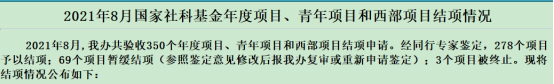 2021年8月国家社科基金年度项目、青年项目和西部项目结项情况表