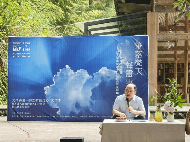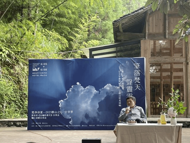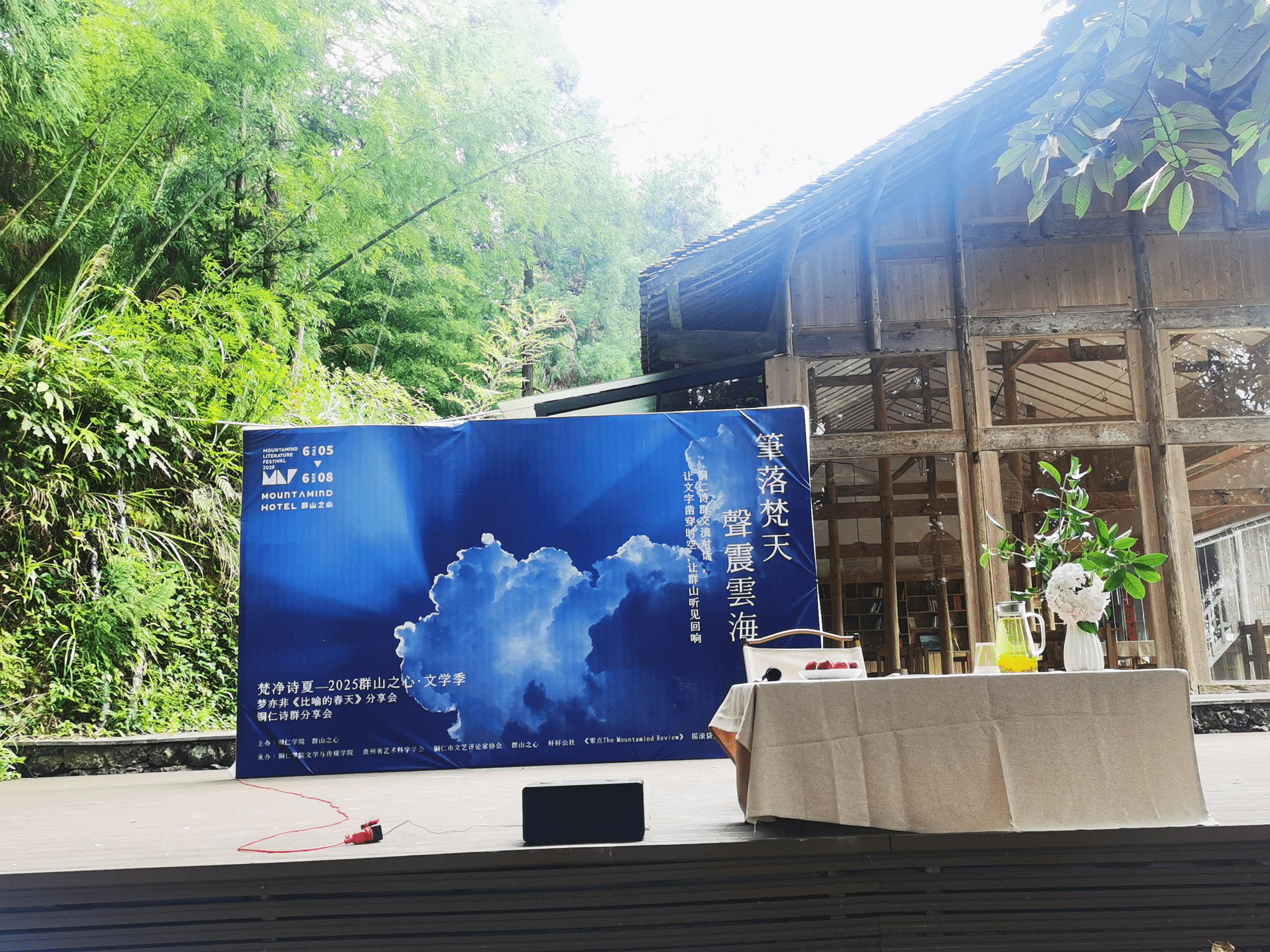 6月7日,“梵净诗夏·2025群山之心文学季活动之一铜仁诗群研讨会”在梵净山“群山之心”成功举办。活动由bv伟德国际1946与“群山之心”(贵州诗章文旅有限公司)联合主办,bv伟德国际1946文学与传媒学院、贵州省艺术科学学会和铜仁市文艺评论家协会共同承办,旨在对铜仁诗歌现象进行全面评述,并对黔东地区诗歌创作进行深入探讨。bv伟德国际1946文学与传媒学院教授、贵州省作家协会副主席孙向阳,文学与传媒学院中文系主任王棋君、王晓旭(末未)副教授,以及晨光文学社成员戴梦娇、罗应焱、蒋振炜、周俊杰、牟群等师生共同出席了活动。活动汇聚了梦亦非、姚辉、胡马、木郎、陈子弘、龙金永等30余名国内著名诗人与铜仁本土诗人共同参与。与会者以诗为媒,深度挖掘梵净山的自然与人文魅力,大力推动地域文学与文化的繁荣创新。