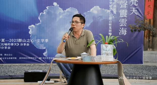 随后,与会诗人对铜仁本土诗人末未、王晖、非飞马、朵孩、龙金永、牟群、楚槐序(蒋振炜)等人的作品进行深度剖析,提炼出铜仁诗歌群体的三大特征:多样性与丰富性、独立性与纯粹性、在地性与普遍性,充分肯定了铜仁诗人在捕捉生活灵感方面的努力。同时,他们也明确指出了部分诗歌创作中的短板与痛点,包括语言精准性、意象创新性和情感深度等方面的不足,希望铜仁诗人未来在这些领域进一步打磨,以提升艺术感染力。