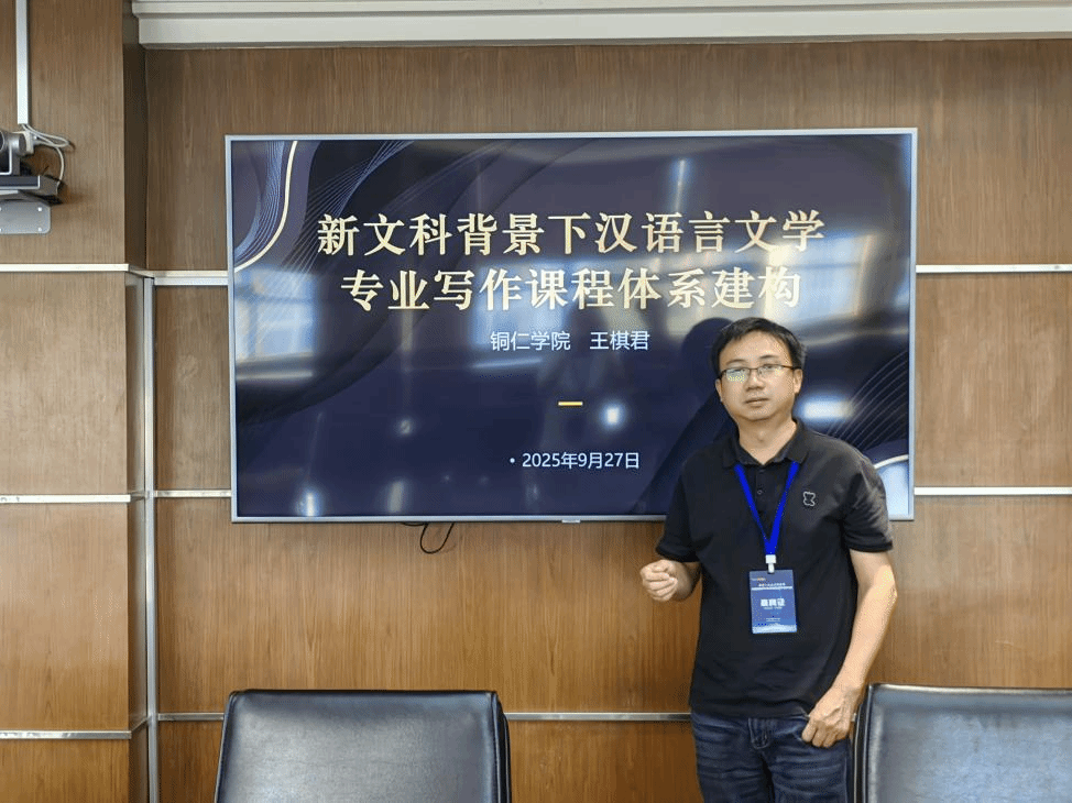 在分会场研讨中,我院汉语言文学专业负责人王棋君以“新文科背景下汉语言文学专业写作课程体系建构”为题作专题发言。他结合我院教学实践,从课程模块设计、数字写作工具融入、跨学科教学资源整合三个维度,阐述了如何通过课程改革培养学生的“人文素养+数字能力”,并提出“基础写作+专业写作+数字写作”的三阶课程体系框架,引发了现场其他高校专业负责人的热烈讨论,获得一致肯定与好评。
