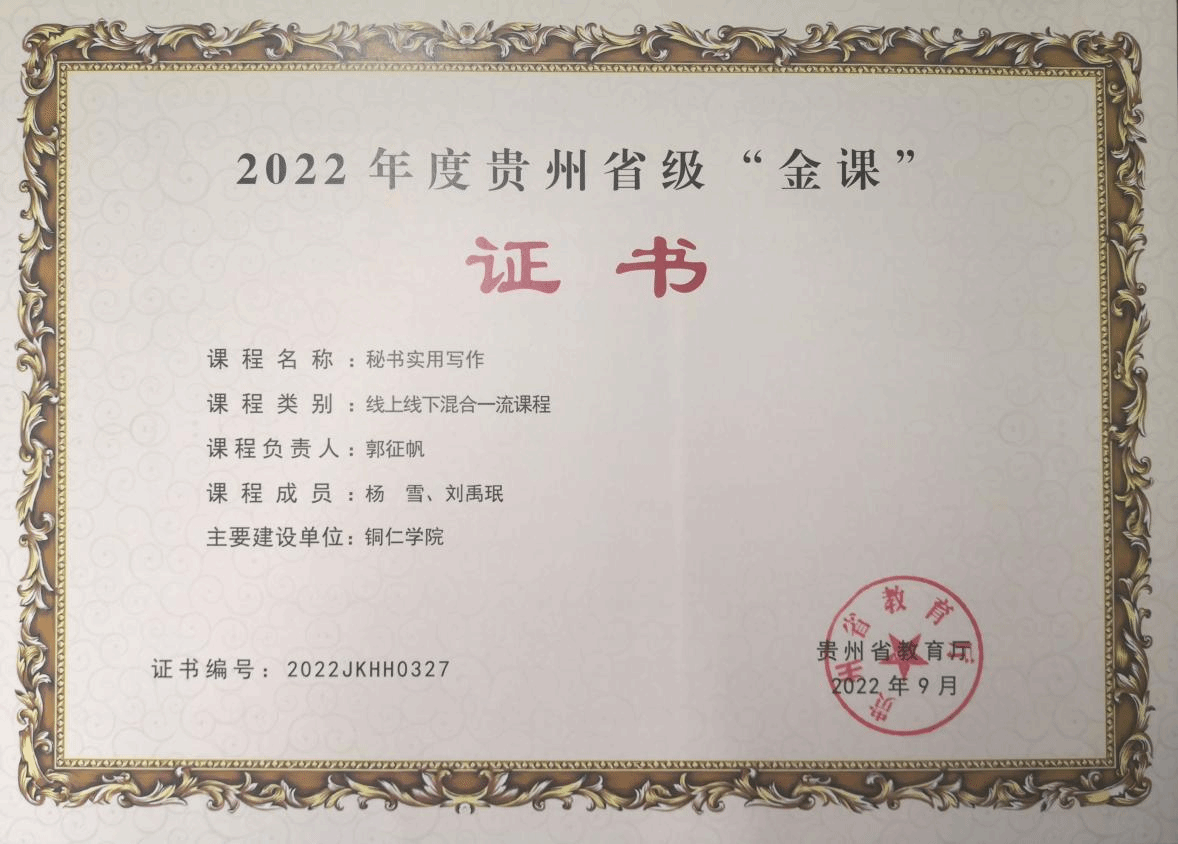 经过多年努力,该课程育人成效显著,教学成果丰硕。在人才培养方面,学生专业技能与社会责任感兼具,运用公文写作知识撰写抗疫救灾倡议书,带动捐款6000余元;近五年在全国商务秘书职业技能大赛获团体一等奖3项、二等奖5项,374人次获奖。专业建设上,形成“红色铸魂、专业立身”共识,课程入选省级“金课”,完成2项省部级教改项目,出版2本专业著作。