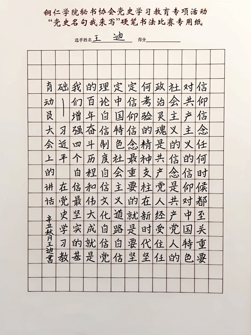 学生书写党史公文中的名句