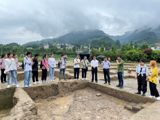 贵州省研究所所长周必素表示,对于老师和同学们的到来,他们非常欢迎。他还希望坝黄镇考古项目能够让铜仁文化能够得以传承和发展。据研究所人员介绍,遗址文物陶器和石制品占多数,石制品出土较多,打制石器有100余件,约为商周时期人类所使用。在工作人员的帮助下,老师和同学们还动手制作了自己的拓印作品。随后,大家来到考古现场。杨兴英一行人与研究所人员就考古发掘工作的相关问题作了深入的交流,研究所人员耐心回答了同学们就考古发掘工作提出的疑问。