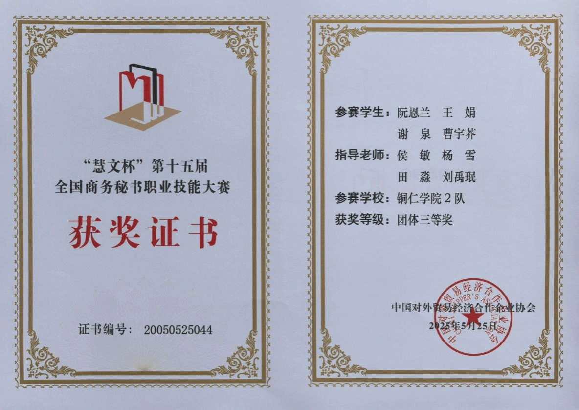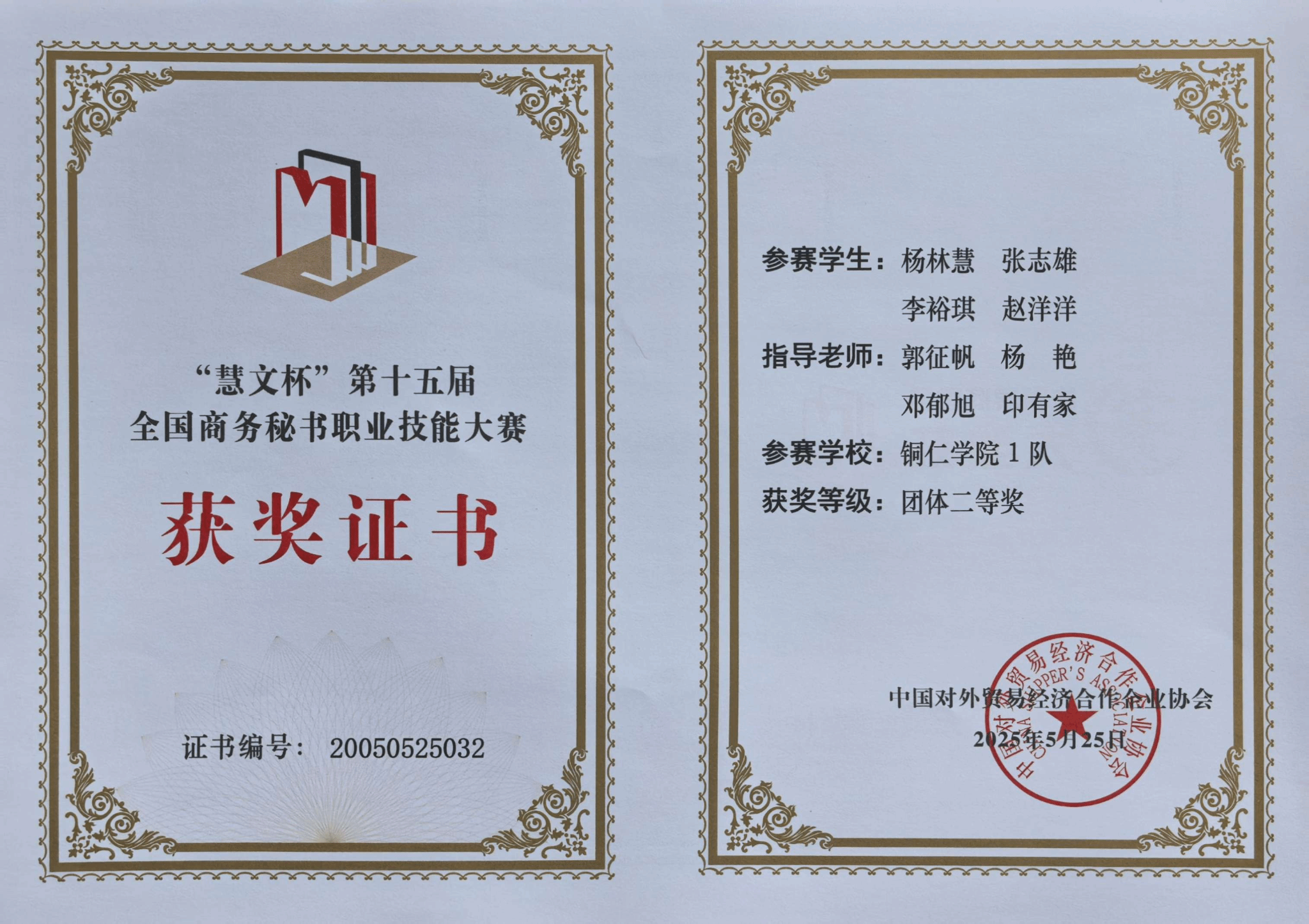 祝获!bv伟德国际1946荣获第十五届 全国商务秘书职业技能大赛佳绩