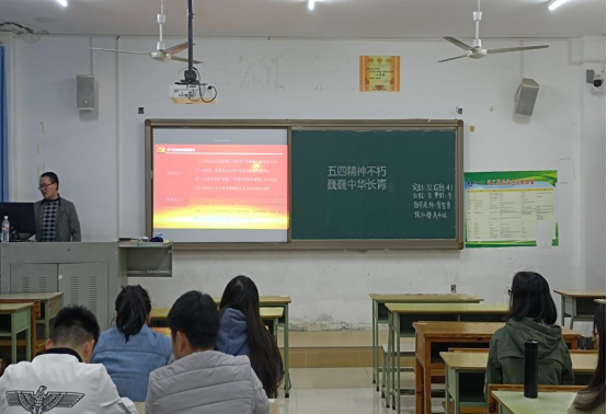 4月25日,我院各班在依仁楼A各教室开展了以“五四精神不朽,巍巍中华长青”为主题的班会。
