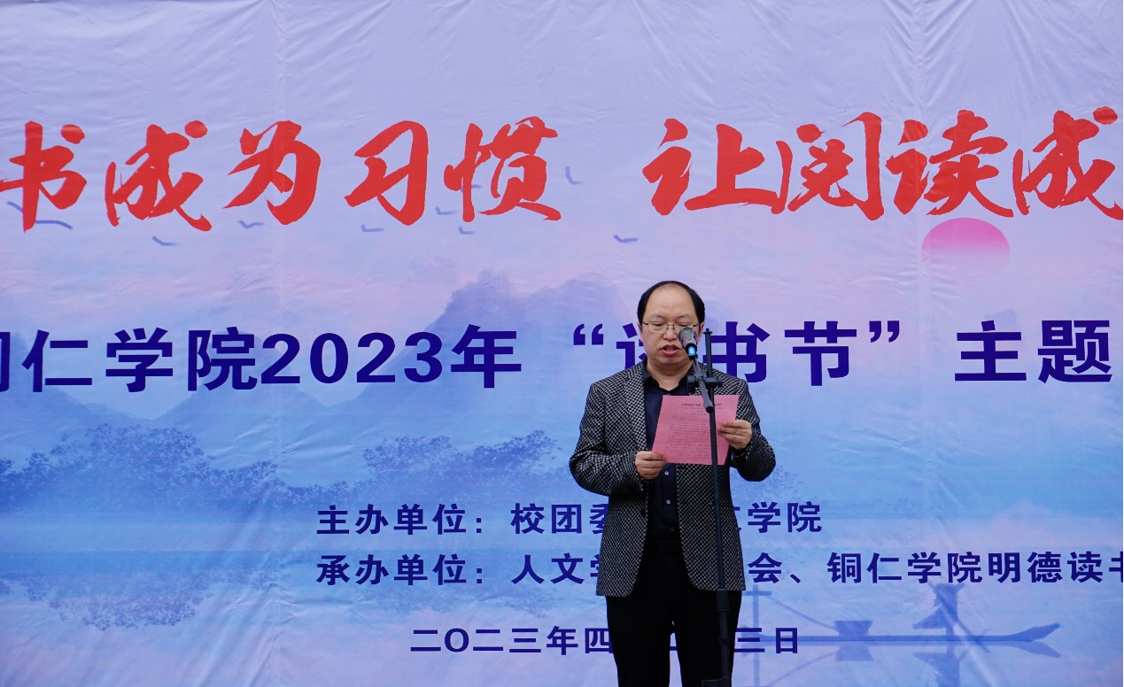 活动在人文学院朗诵队带来的诗朗诵《青春中国》中拉开了帷幕,张朝飞宣读了“读书节倡议书”后,人文学党委书记、院长孙向阳作了讲话。孙向阳说,书籍是精神世界的营养品,是智慧的钥匙,是最好的朋友。大家要在“书香”的浸润下,以淡然的心态面世,以从容的方式行走,让读书成为习惯,让阅读成就梦想。随后,举行了人文学院2023年“阅读之星”获奖仪式和签名。