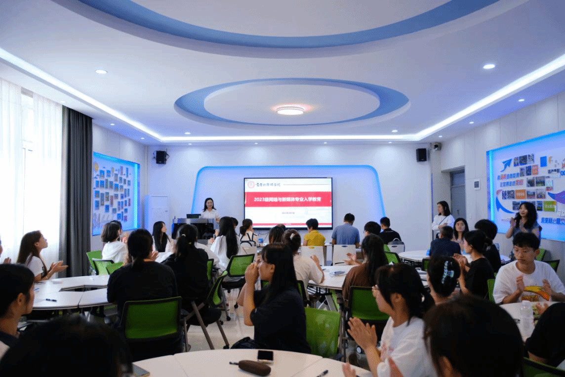 张潇叶介绍了网络与新媒体专业的师资队伍,系统阐释了2023级人才培养方案,帮助新生们理解该专业人才培养理念、培养方式以及预期培养效果,借此提醒新生,做好学业规划,不负青春韶华。