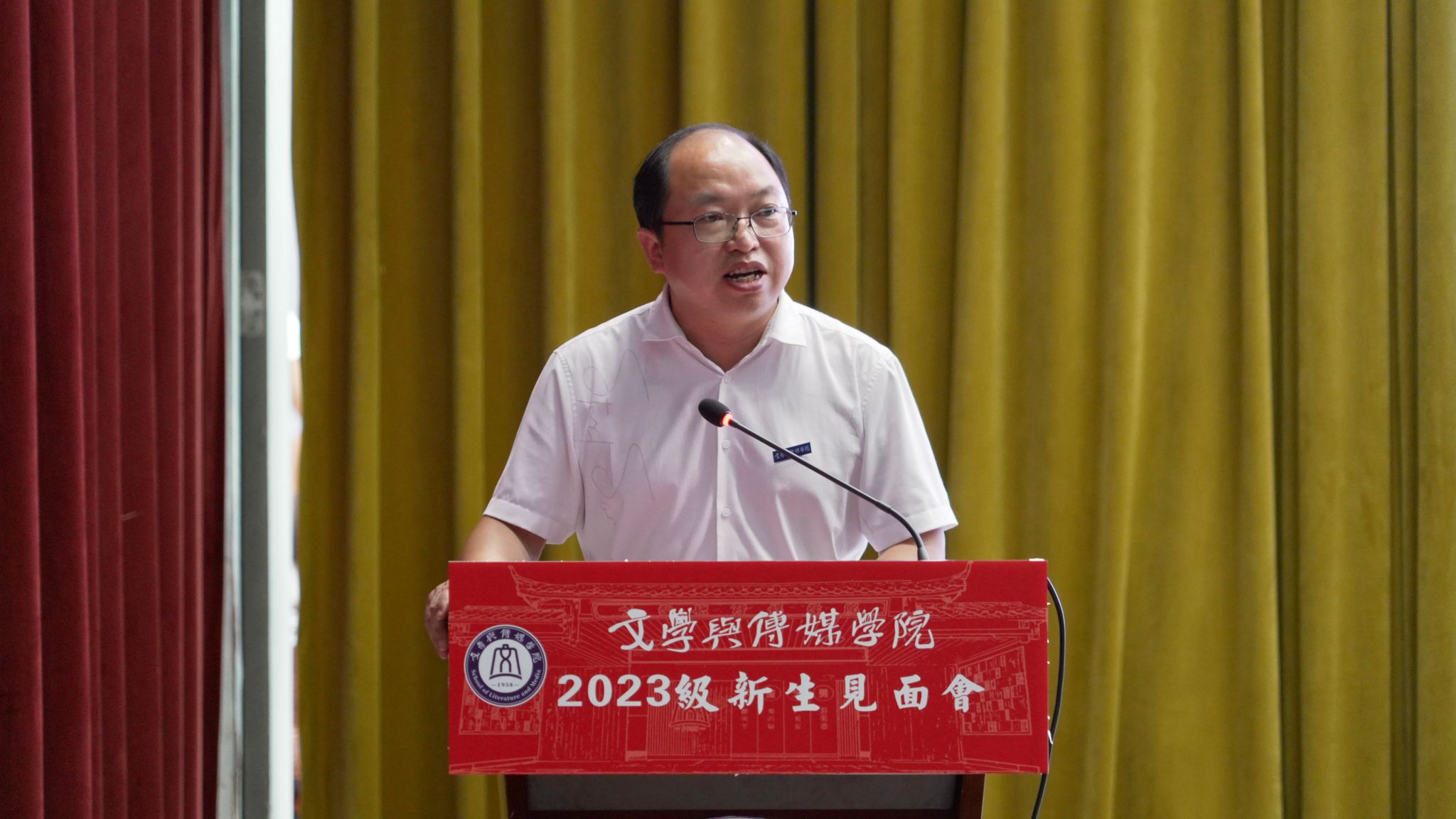 见面会上,张建刚向新同学们逐一介绍了参会的各专业任课教师,蒋小红介绍了文学与传媒学院的发展历程和近年来学院在人才培养、科学研究、社会服务方面取得的成绩。