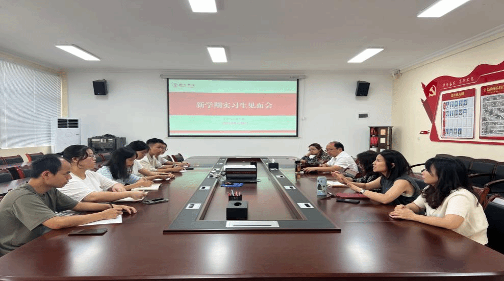 首先,参会实习生进行自我介绍。指导老师对各科室实习生作了实习指导,希望大家学会分工合作,学会与他人相处,增强环境适应能力,灵活运用办公软件,增强工作效率。