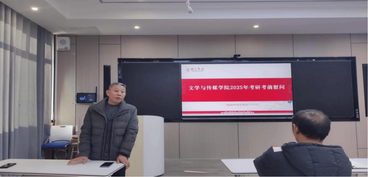 12月16日,我院在依仁楼A408教室举行2025年研究生招生考试考前慰问活动,为考研学子加油鼓劲。院领导孙向阳、杨雪、张建刚、蒋小红,各毕业班班主任及考研学生参加活动。副书记杨雪主持活动。