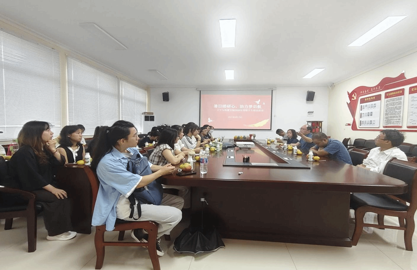 8月22日,我院以“暑日暖研心,助力梦启航”为主题,在我院会议室开展考研学生暑期慰问活动。院长孙向阳,院党委副书记杨雪,考研班班主任印有家及辅导员王棋君、秦伟与30余名备考学生共聚一堂,通过经验分享、互动交流等形式为学子注入备考信心。活动由党委副书记杨雪主持。