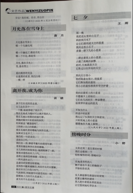 《新华文摘》2023年第8期转载王晖老师诗歌《七夕》