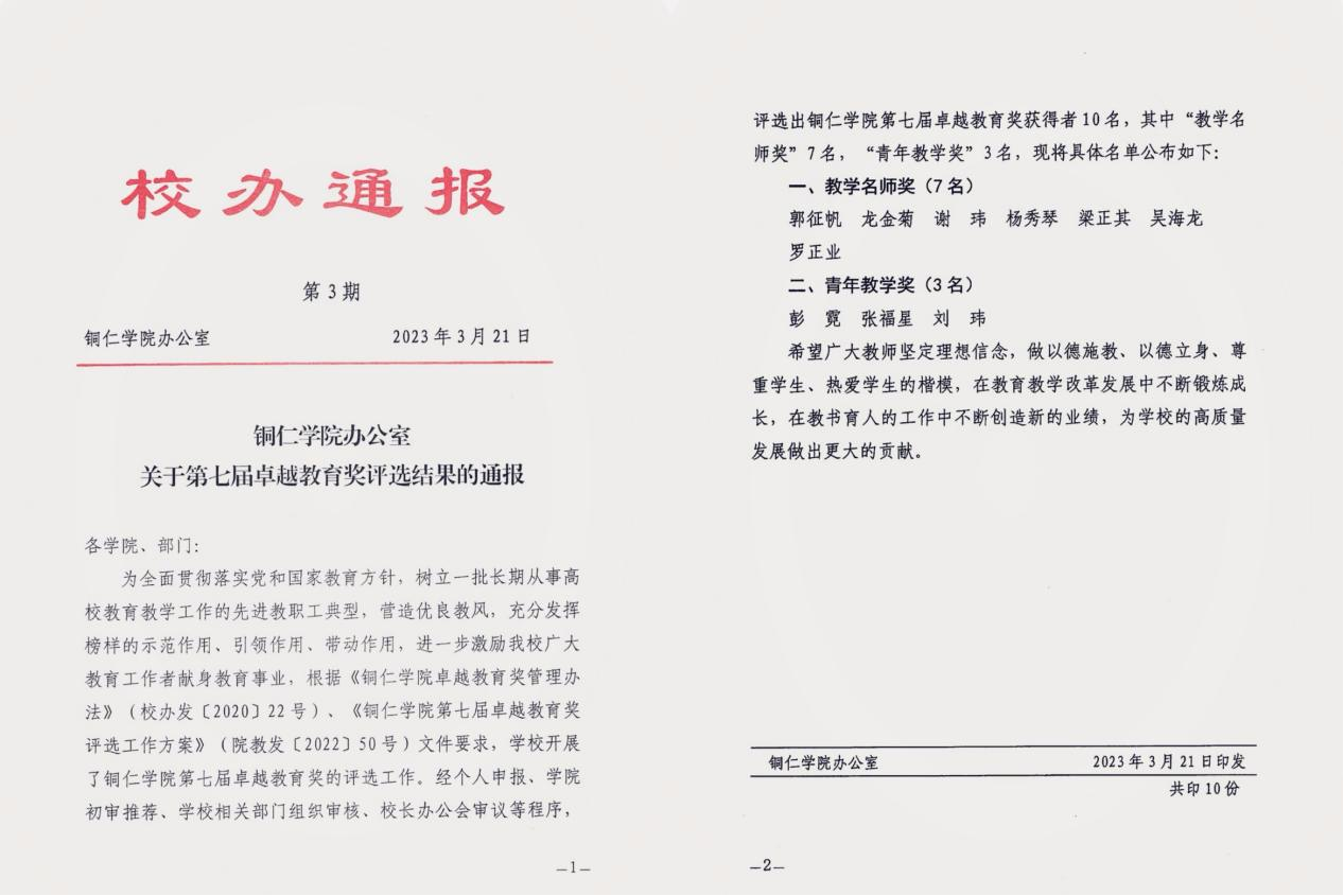bv伟德国际1946卓越教育奖旨在表彰长期从事本科教育教学工作,具有较高学术造诣,注重教学改革与实践,教育教学水平高,教学效果好,政治思想素质过硬的深受广大师生爱戴的优秀教师,充分发挥优秀教师的示范作用、引领作用。该项奖励设有田秋最高奖、bv伟德国际1946教学名师奖、bv伟德国际1946青年教学奖、教育管理奖4个种类,从2016年开始实施,已连续评选了七届。郭征帆这次获奖,是他继获得首届和第四届青年教师奖,第二届教育管理奖后,第四次荣获此项殊荣。此前,人文学院教师孙向阳、白俊骞、水汶、梁光华等也荣获了各届次的教学名师奖和青年教学奖。