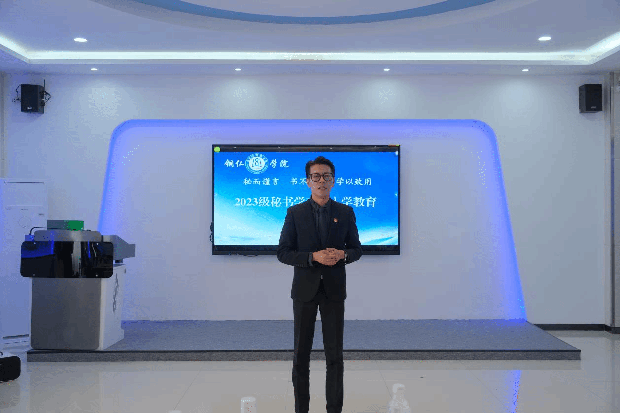 10月9日,文学与传媒学院举行了2023级秘书学专业入学教育,文学与传媒学院党委书记、院长孙向阳,副院长张建刚出席活动。