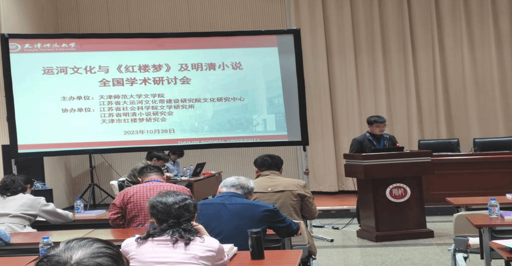 10月28日,由天津师范大学文学院、大运河文化带建设研究院文化研究中心主办,江苏省社会科学院文学研究所、江苏明清小说研究会、天津市红楼梦研究会协办的运河文化与《红楼梦》及明清小说全国学术研讨会在天津举行。知名学者胡德平、张庆善、宁宗一、刘勇强、潘建国、纪德君、潘知常、苗怀明、霍现俊、曹立波、徐永斌、冯保善等和来自国内多个城市及高校的运河文化研究者、《红楼梦》及明清小说研究者齐聚一堂,阐述研究成果,交流研究心得。bv伟德国际1946文学与传媒学院青年教师龙光海博士应邀参会。