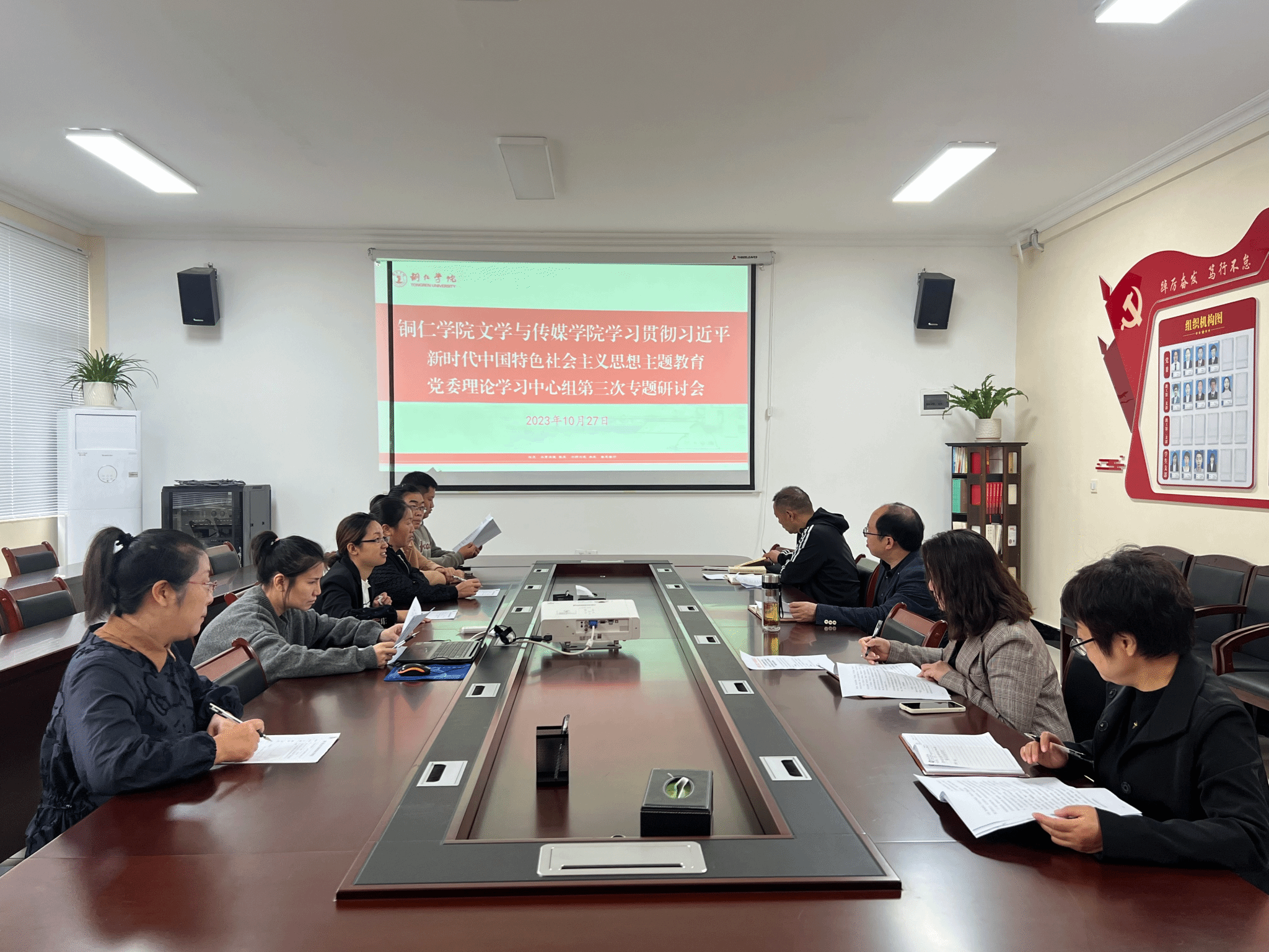 10月27日,文学与传媒学院学习贯彻习近平新时代中国特色社会主义思想主题教育党委理论学习中心组第三次专题研讨会在我院会议室召开。中心组全体成员参加会议,会议由党委书记孙向阳主持。