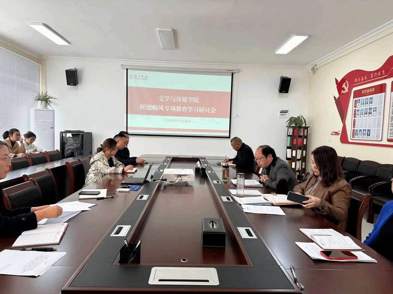 11月20日,文学与传媒学院在院会议室召开师德师风专项教育学习研讨会,会议由文学与传媒学院党委书记、院长孙向阳主持,全体教职工参会。