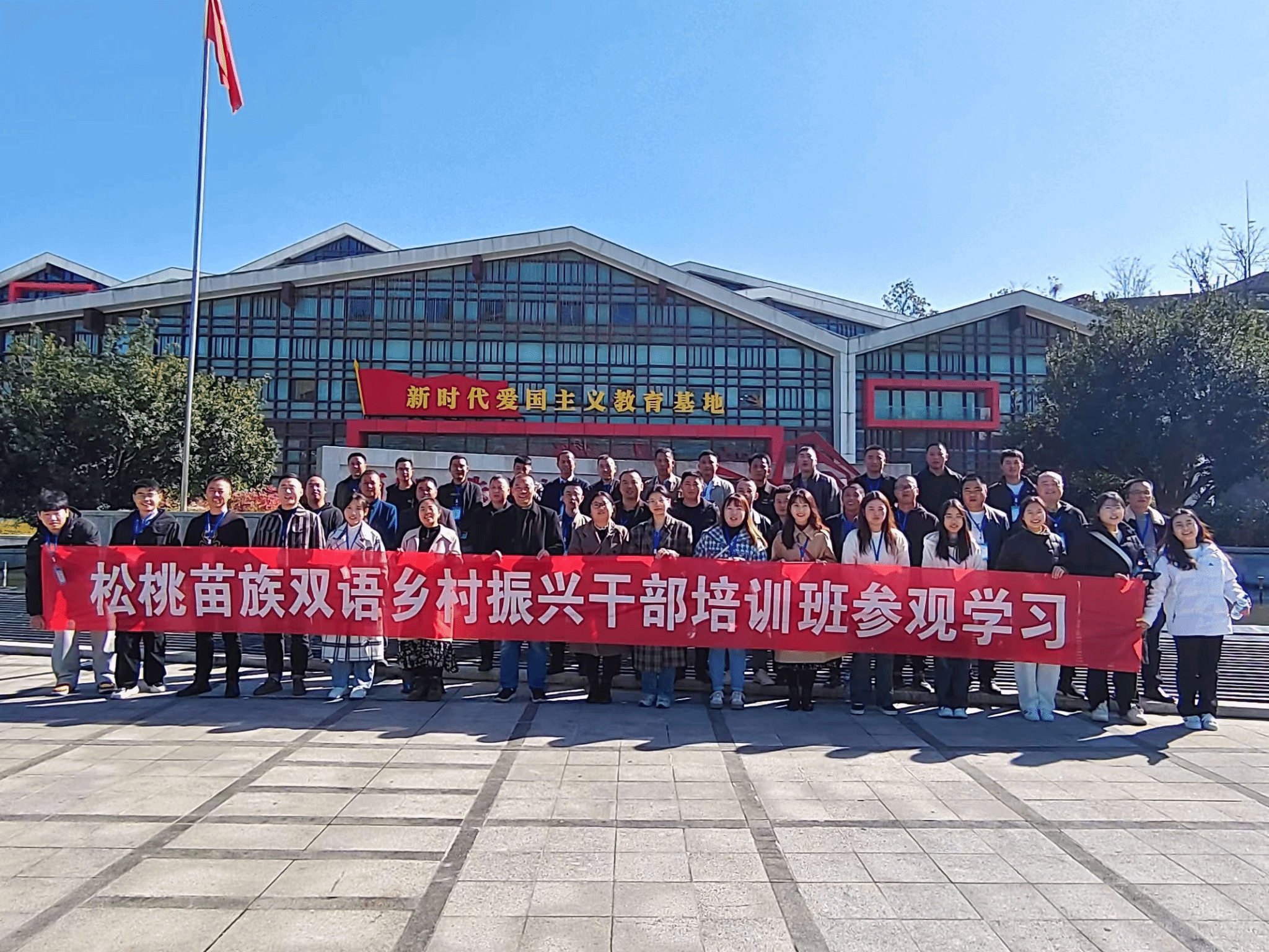 为了适应新时代农村发展需求,提高乡村振兴干部的创新能力,2023年11月28日,在“松桃苗族双语乡村振兴干部培训”项目负责任张建刚和培训班班主任刘禹珉的带领下,进行了多场现场教学活动,学员们热情的参观bv伟德国际1946武陵山旅游产品实训实践中心(民族手工艺品展厅)、bv伟德国际1946文学馆、普通话测试站(民汉双语测试站)和万山古镇、万山高楼坪青年湖村黄家寨。