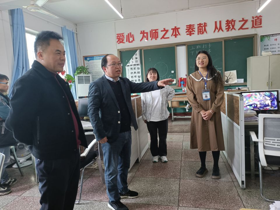 孙向阳一行与附中语文教研室的教师代表进行了座谈交流,听取老师们的意见和建议。老师们对汉语言专业实习情况给予了充分肯定,表示实习生在各项实习工作认真负责,有强烈的学习欲望以及吃苦耐劳的精神。随后,一行人又来到汉语言文学专业学生实习办公区,实地了解了实习生的听课、讲课、班主任工作等实践教学情况,并检查了学生的实习周志等教学材料。孙向阳院长与实习学生们交谈询问,深入了解学生实习教学工作、学习生活、毕业论文撰写等情况,并就相关问题进行答疑解惑。同行的老师们也鼓励同学们珍惜实习机会,虚心向指导老师学习,努力在实践中锻炼和提升自己,为今后成长打下坚实基础。