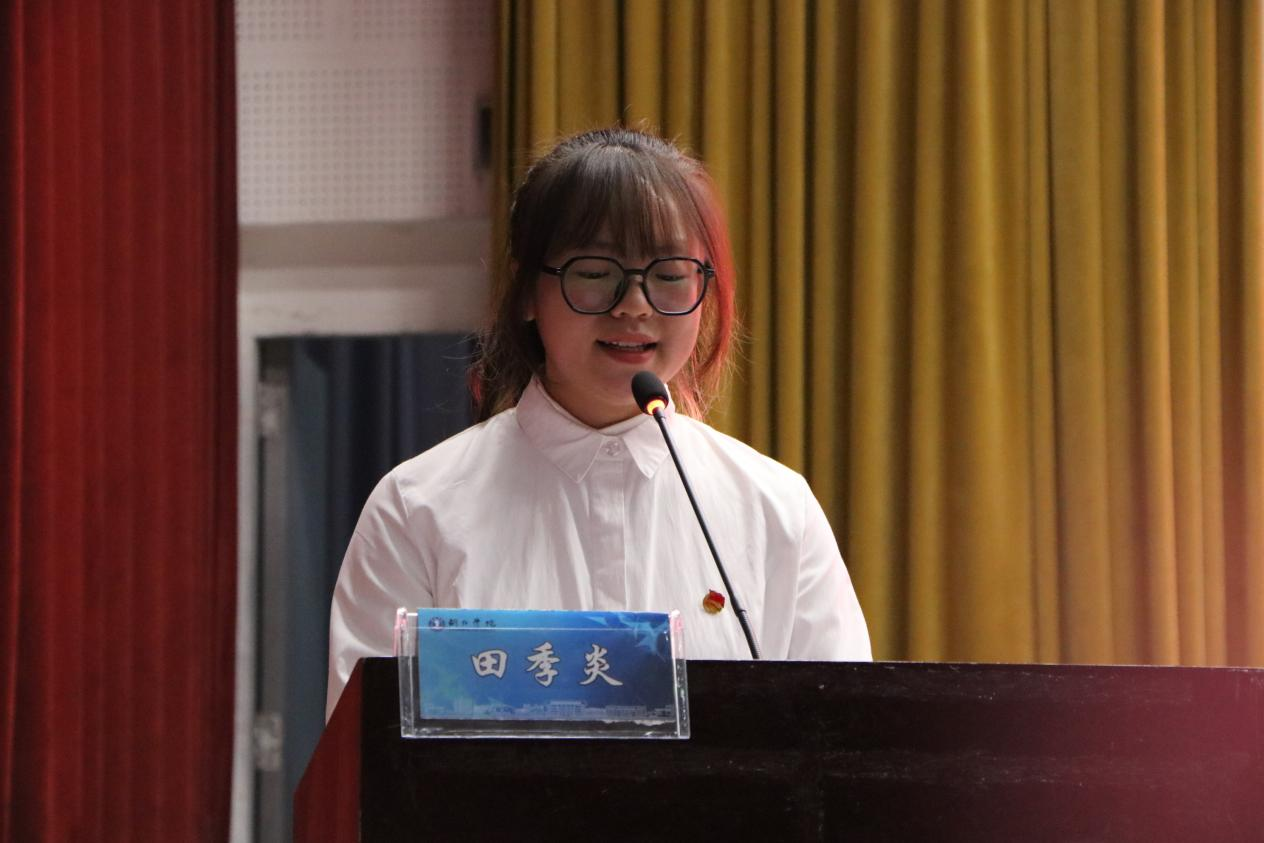 新生代表2022级汉语言文学专业学生田季炎发言,她说作为人文学院的一份子,同学们要以强国为目标,踔厉奋斗,积极进取;以理想为风帆,锤炼本领,探索未知;以责任为动力,勇敢担当,牢记时代使命,争做有为青年。