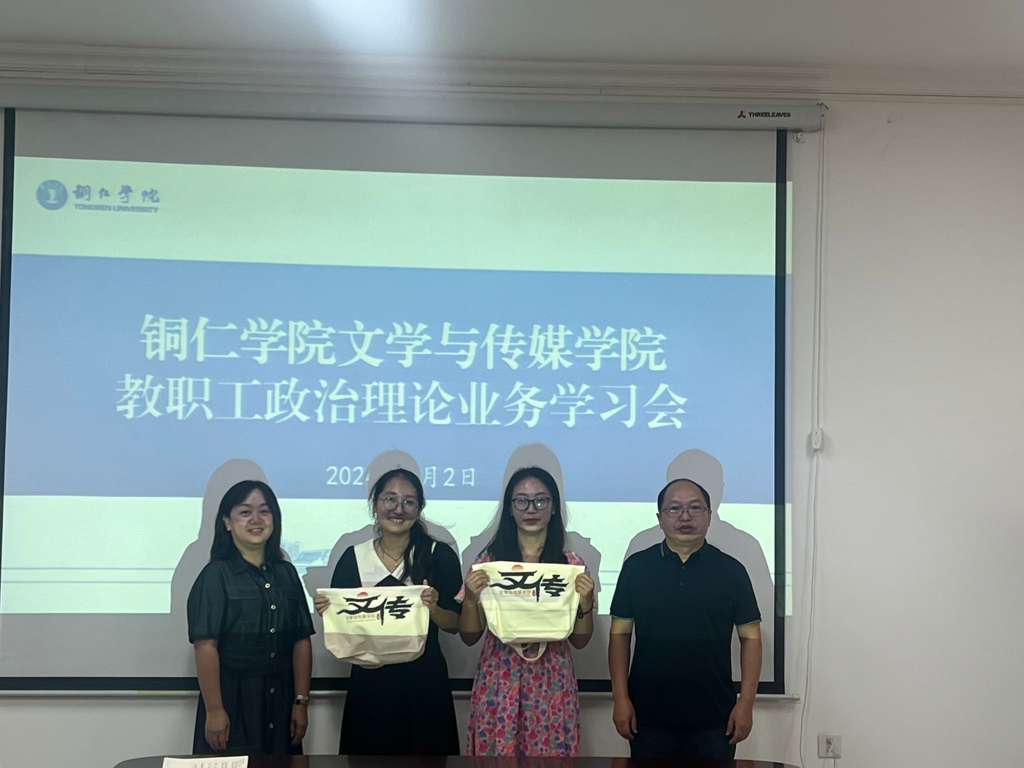 会议现场,向新入职的两位教师赠送了学院文创纪念品。
