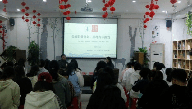 黎帅博士在讲座中分享了自己学术研究成果,并着重强调了职业规划中目标设定的重要性,并详细剖析了新媒体、教育等热门行业的发展前景及岗位技能要求。