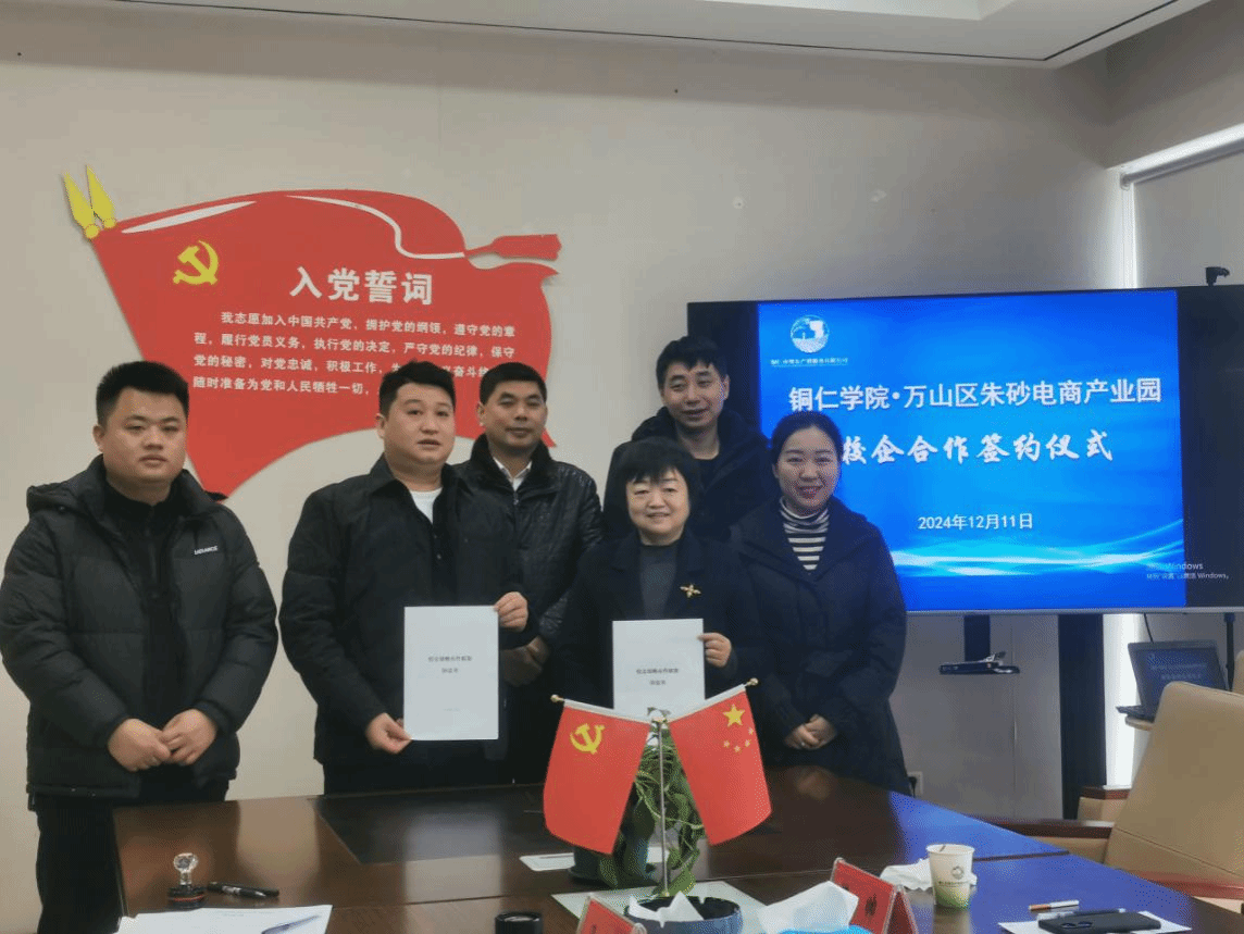 为拓展优质实习、就业岗位,强化校企合作、推进产教融合,12月11日,文学与传媒学院副院长蒋小红前往万山区朱砂电商产业园开展校企合作交流活动,并与铜仁市梵农产销服务有限公司签署校企战略合作协议。