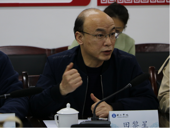 在随后召开的座谈会上,院长田黎星代表我院对陈开政副院长一行的到来表示热烈欢迎。他简要地介绍了伟德官网的百年办学历程、“小而精”“育人为本、科研先行”的发展战略及我院的基本概况,表示希望能以此为契机,加强与六盘水师范学院文学与新闻学院之间的院际交流与合作。