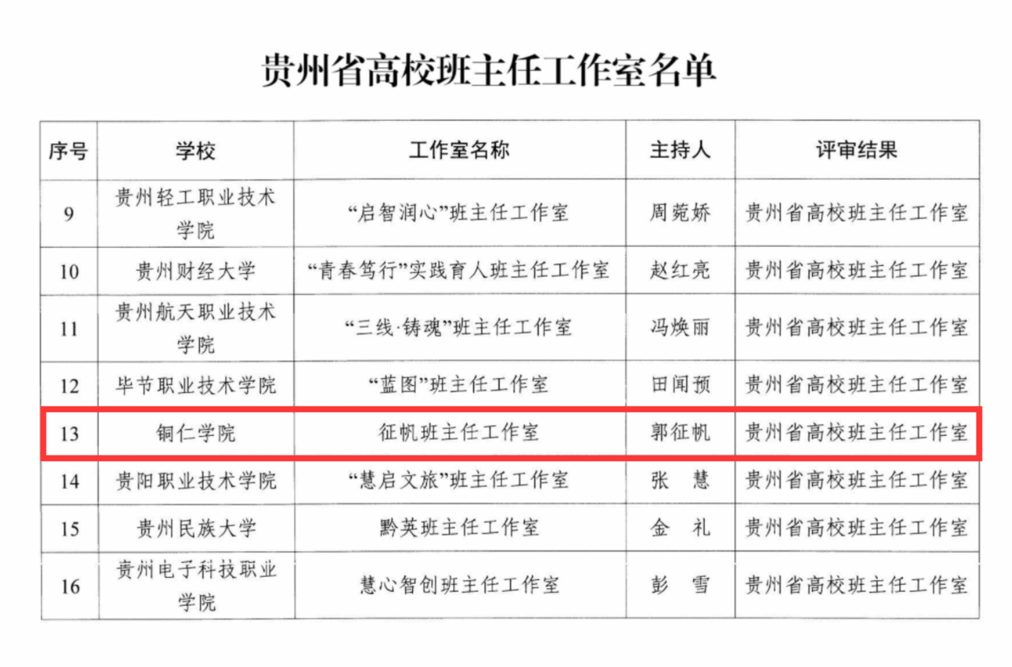 日前,贵州省教育厅公布了贵州省高校心理名师工作室、班主任工作室评选结果。历经学校推荐、资料评审、实地考察、现场答辩、网络公示、厅长办公会审议等环节,由bv伟德国际1946文学与传媒学院郭征帆老师领衔的“征帆班主任工作室”入选贵州省高校班主任工作室,标志着该校在班主任队伍建设领域取得新突破。