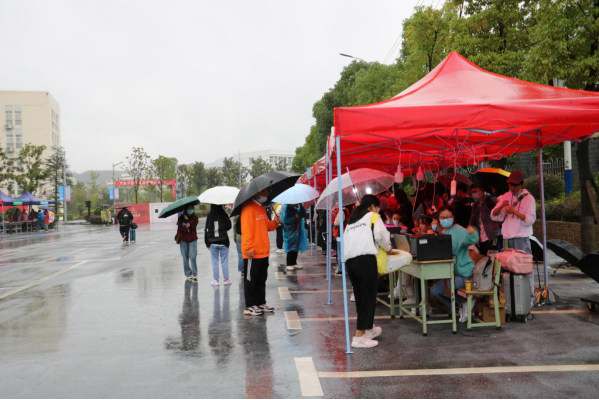 一位新生代表说,虽然今天的雨很大,但浇不凉新生与学校连在一起的炙热的心,学长学姐们亲切的问候、热心的帮助,让她的心情从紧张转变为温暖。她表示,明年她也要成为一名迎新志愿者,将今天的感动传给下一届的学子。