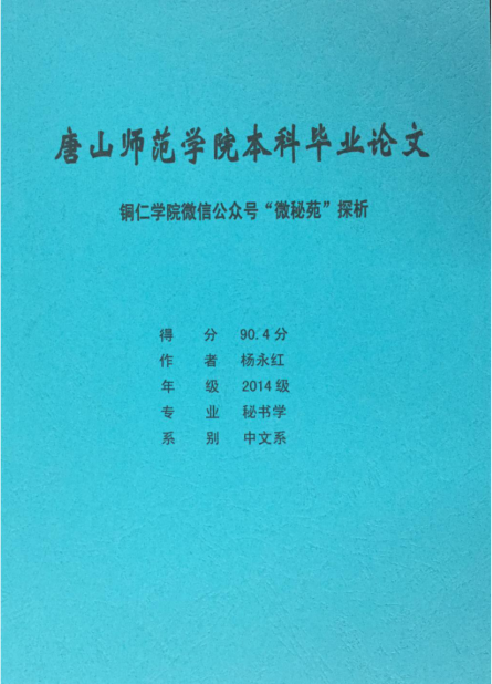唐山师范学院2014级秘书学专业学生杨永红更是将“微秘苑”作为研究对象,撰写了题为《bv伟德国际1946微信公众号“微秘苑”探析》的毕业论文。该文章从“微秘苑”的特点、“微秘苑”作用、“微秘苑”启示等方面,对微秘苑进行了研究和分析,她认为微秘苑“定位清晰、眼界高远、团队敬业、专栏新颖,起到提高秘书专业知名度、提高秘书专业美誉度、增强了秘书学子职业认同感的作用。”该论文被评为唐山师范学院2018届优秀毕业论文。