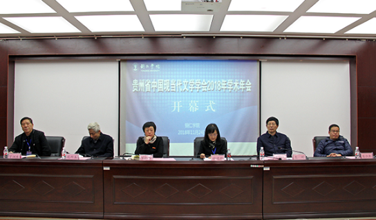 2018年11月24日,由贵州省中国现当代文学学会主办,我院及田秋写作学院共同承办的贵州省现当代文学学会在伟德官网顺利召开。副校长罗红芳、贵州省中国现当代文学学会会长谢廷秋、贵州首位鲁迅文学奖获得者肖江虹等领导专家出席开幕式并在主席台就坐。会议吸引了全省各高校教师、在读研究生以及铜仁作家安元奎、王晓旭、侯乃铭等70余人参会。会议由田秋写作学院副院长孙向阳主持。