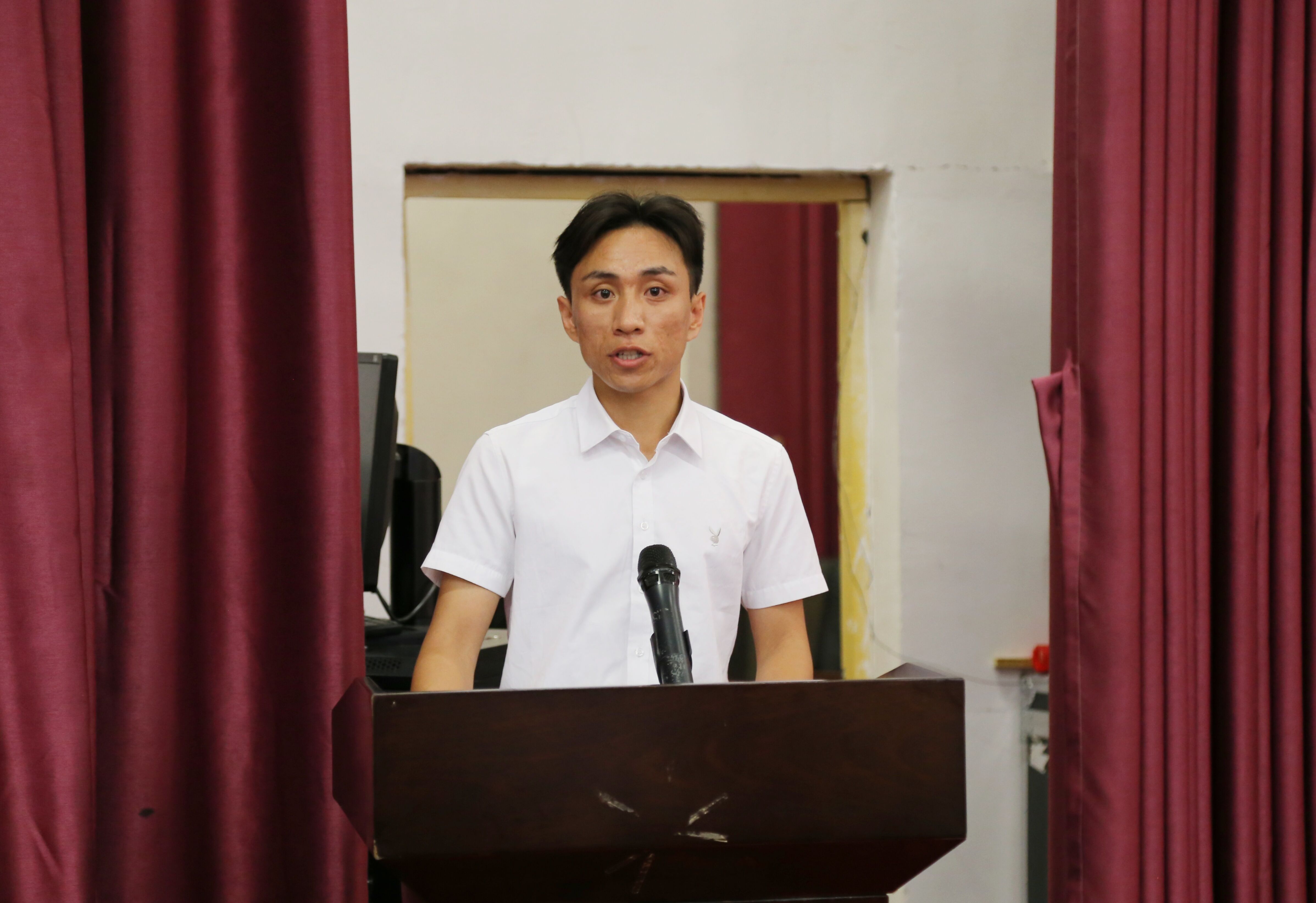 2016级秘书学专业苏鹏飞代表参加第一期服务学习的全体同学作了发言,他表示将深入贯彻侯长林校长对服务学习工作所作的批示精神,摆正心态,找准定位,做谦虚、进取的新时代青年人;遵守纪律,努力工作,做明德、致用的bv伟德国际1946人。