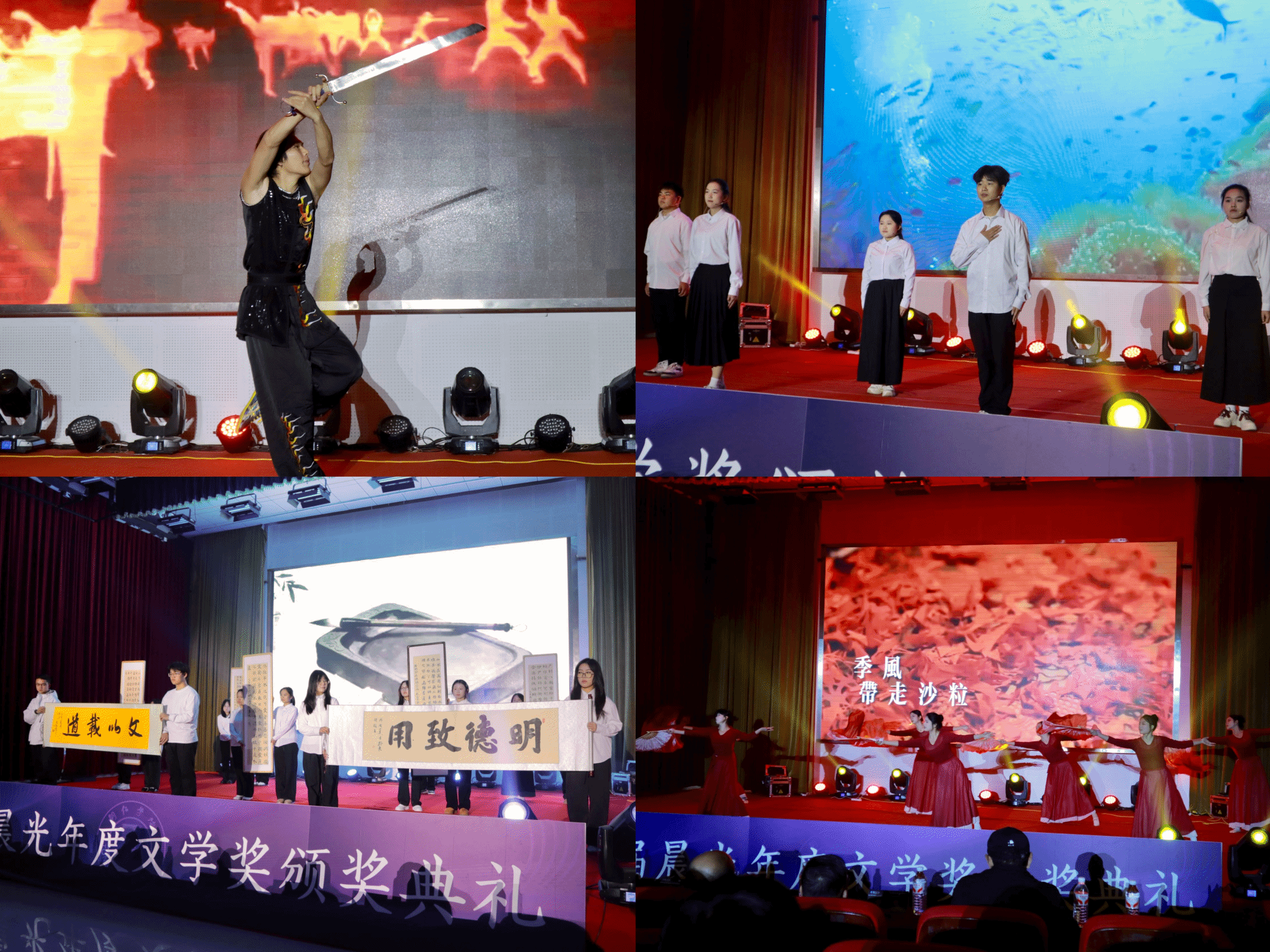 获奖学生代表龙青在发言中表示,文学是“日常的呼吸”,《晨光》期刊与文学社是一个“用真诚搭建的家园”。活动现场还演绎了融合武术与书法的节目《墨武同辉》,以及舞蹈《光亮》等,呼应“文字如光”的典礼主题。(供稿:谢佳欣 摄影:石娅 张锴乾 一审:刘禹珉 二审:张建刚 三审:杨艳)