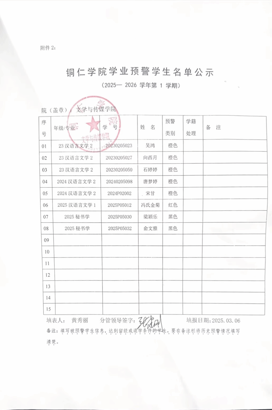 bv伟德国际19462025—2026学年第1学期学业预警名单公示