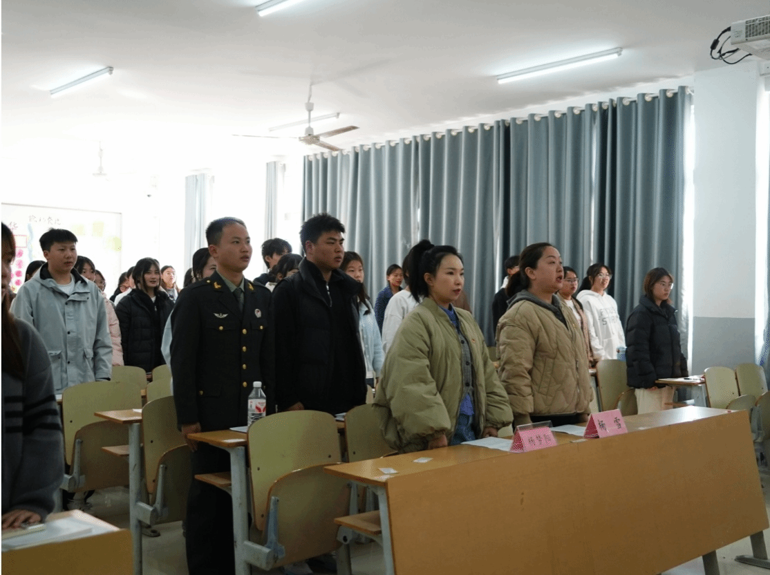 开班仪式上,学院党委副书记杨雪、团总支负责人杨梦阳与全体参训学员共同参加。仪式在庄严的团歌声中拉开帷幕,全体成员起立奏唱团歌。杨梦阳结合培训目标与意义,从思想提升、责任担当等方面对学员提出殷切期望。杨雪围绕青年骨干的成长与发展发表讲话,勉励学员勤学善思、知行合一,并宣布培训正式开班。