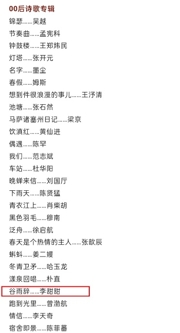 近日,《诗刊》2023年第12期目录发布伟德官网晨光文学社社员李甜甜的诗歌作品《谷雨辞》列入其中。