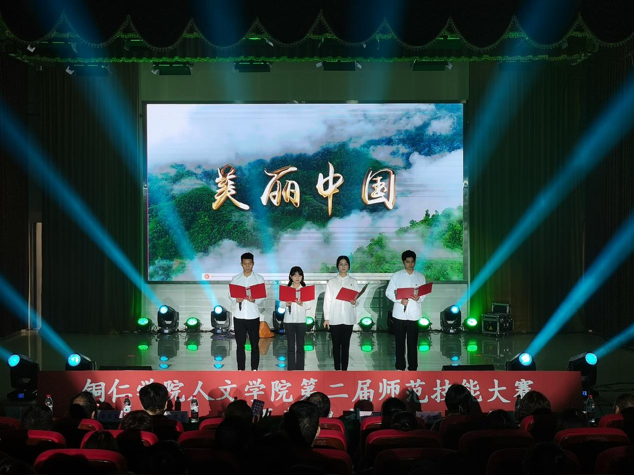 颁奖现场对各项获奖作品进行了展示,出席领导为获奖同学颁奖并合影留念。师生们还欣赏到了人文学院师生的歌唱、朗诵、舞蹈等表演,教学技能比赛一等奖获得者曹婷婷作了课堂教学现场展示。