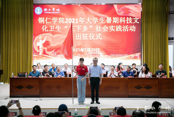 为深入学习宣传贯彻习近平新时代中国特色社会主义思想、习近平总书记“七一”重要讲话精神和视察贵州重要讲话精神,贯彻落实习近平总书记关于青年工作的重要思想,结合伟德官网党史学习教育“百名教授博士助力乡村振兴下基层”行动,引导和帮助广大青年学生上好理论与实践相结合的“大思政课”,7月20日,伟德官网在梵净山人文生态馆举行了2021年大学生暑期科技文化卫生“三下乡”社会实践活动出征仪式。校党委副书记代亮出席仪式并讲话。校党委委员、宣传部部长叶丹、统战部部长刘德平出席仪式。相关职能部门主要负责人,各二级学院党委书记、分管学生工作副书记、团总支书记、指导老师、大学生志愿者等师生代表共300余人参加仪式。仪式由团委副书记田自立主持。