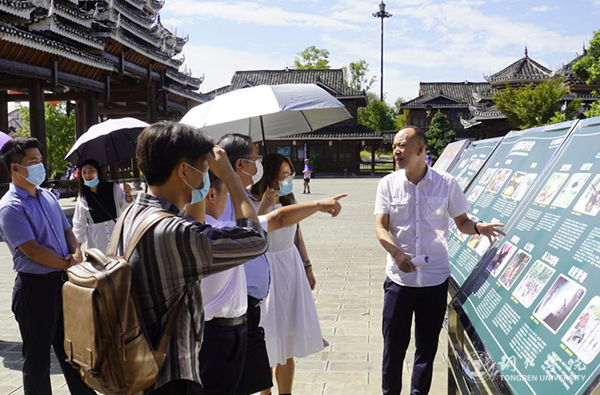 上午,服务队一行在玉屏县双生源公司总经理汤志勇的带领下,参观了玉屏侗族乡愁馆,之后召开了座谈会,围绕建立"崔德虎教授工作室"、董世华博士“乡村振兴"国家项目拟落地金色侗乡“农耕文化园”、原创音乐作品《侗乡等你来》审稿、金色侗乡“乡村振兴"康养及国际视野探索等方面事宜进行了探讨。下午,服务队实地考察了金色侗乡风情园的天幕“产教研习”基地、经果林种植基地、不散的乡场、乡村民俗民居以及乡村旅游文化建设等。晚上,服务队一行人同当地侗族群众一起,观看了侗乡风情园丰富多彩的"中秋"民族文化艺术表演活动。