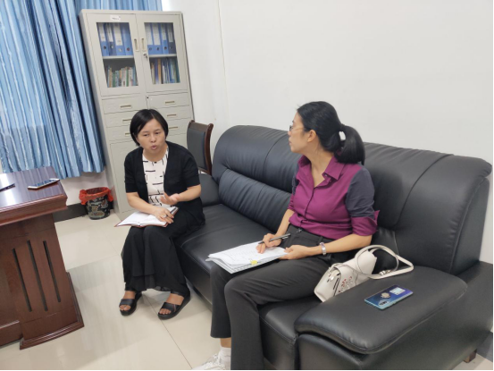 与继续教育学院社会服务科科长袁继文交流现场